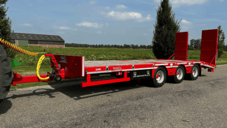 De trailer is robuust gebouwd en gemaakt van materialen van hoge kwaliteit. Dat helpt om het geheel stabiel te houden tijdens transport. Onder de wagen zitten dubbelluchtbanden in de maat 235/75-17.5 en drie 10 ton’s landbouwassen, hiervan is de achterste as meesturend. In combinatie met de lucht beremming met ALR zorgt dit voor een gecontroleerde en stabiele rit tijdens het vervoeren van machines.