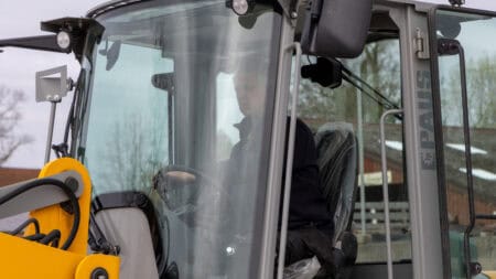 De ruime cabine zorgt voor een prettig werkcomfort, met goed zicht rondom en heldere LED-werklampen die ook in het donker perfect licht geven. De 180° zwenkbare giek maakt het werken op krappe plaatsen een stuk eenvoudiger, omdat je niet telkens hoeft te manoeuvreren met de hele machine.